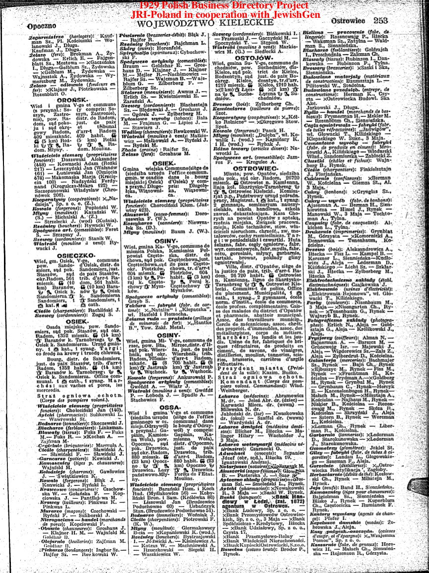 Poniżej przepisano z ww. publikacji strony 252 oraz 253 znajdujące się w części "Województwo kieleckie". Zachowano oryginalną pisownię i formę oraz pominięto wersję francuskojęzyczną.