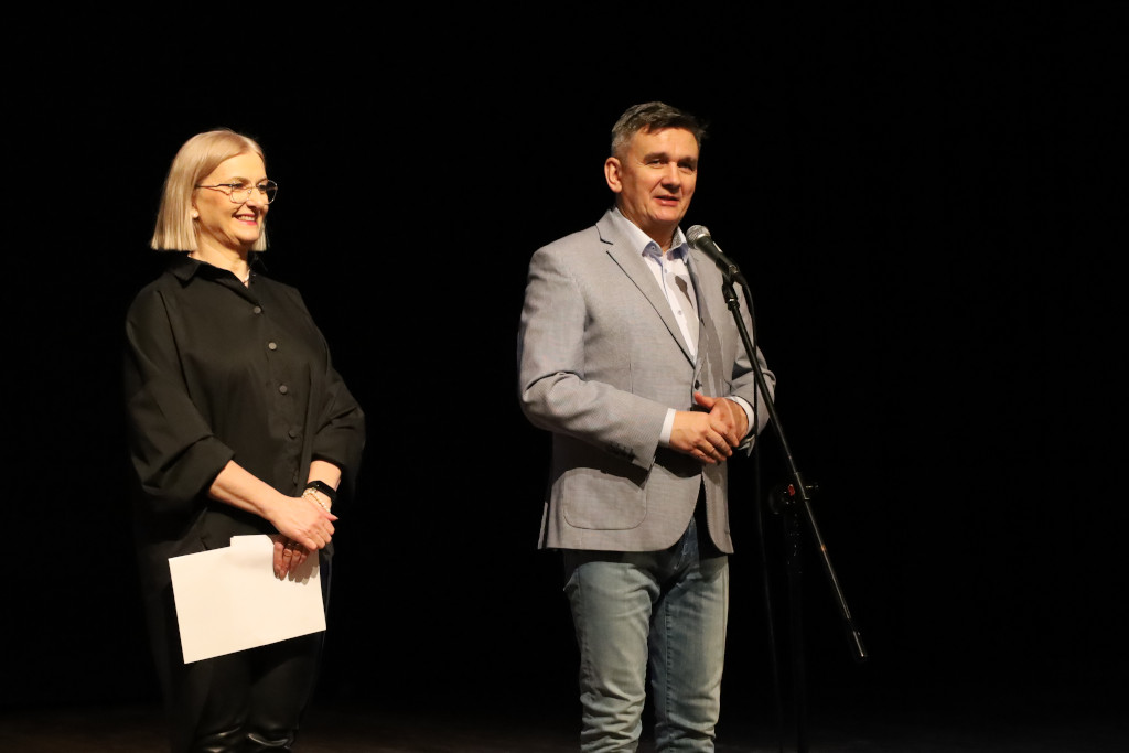 Agata Andrzejewska, koordynatorka Konkursu i Zdzisław Miękus, dyrektor MDK podczas otwarcia eliminacji w Opocznie.