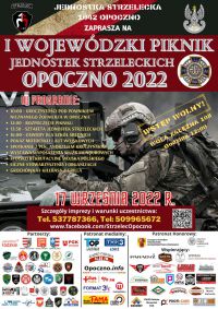 Jednostka Strzelecka 1042 Opoczno zaprasza na I Wojewódzki Piknik Jednostek Strzeleckich Opoczno 2022, który odbędzie się w sobotę, 17 września 2022 roku.