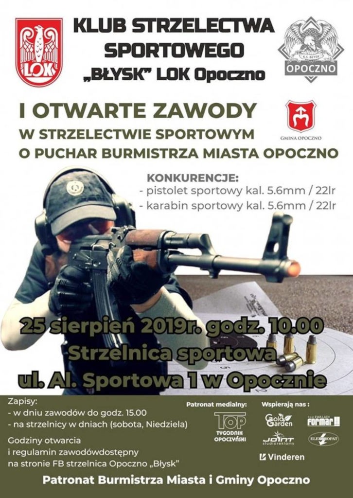 Klub Strzelectwa Sportowego "Błysk" LOK Opoczno zaprasza na I Otwarte Zawodu w Strzelectwie Sportowym o Puchar Burmistrza Opoczna.