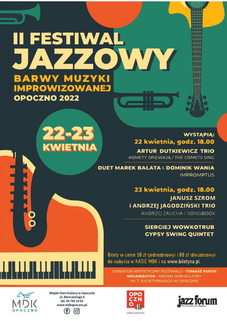 22 i 23 kwietnia br. Miejski Dom Kultury im. T. Sygietyńskiego w Opocznie organizuje drugą edycję „Festiwalu Jazzowego. Barwy Muzyki Improwizowanej”, wydarzenia aspirującego do rangi jednego z ważniejszych w kulturze na krajowej scenie muzycznej.