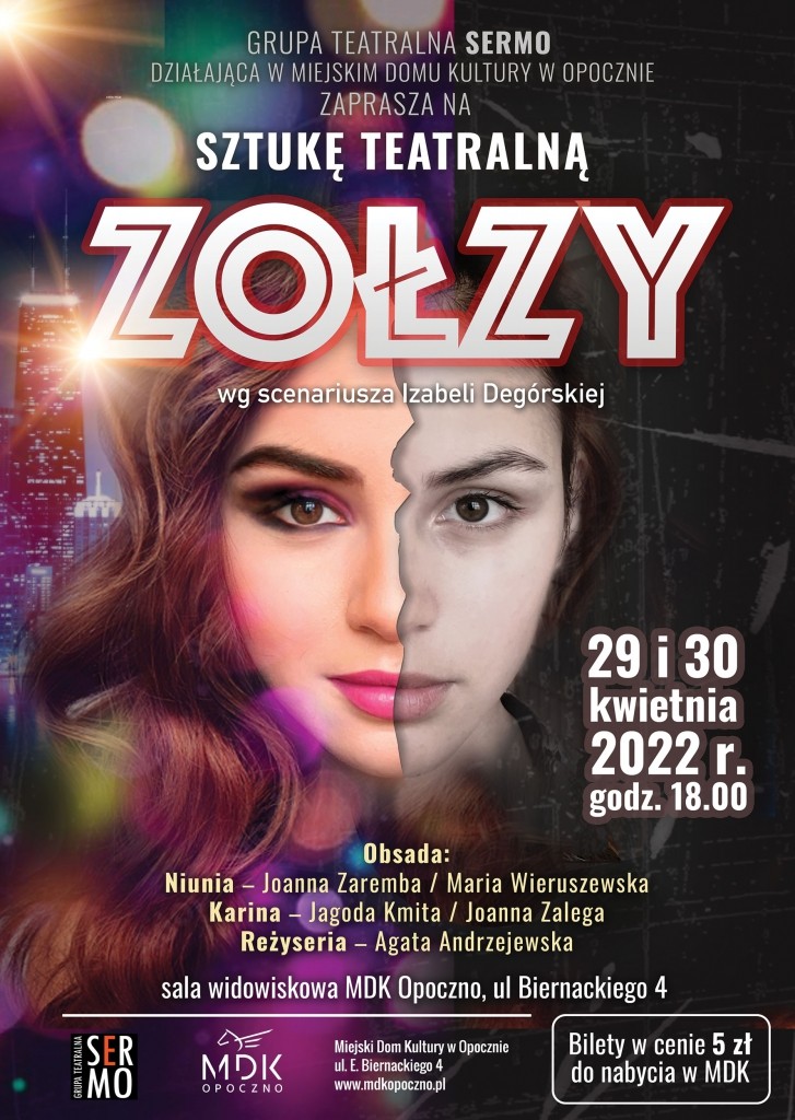 Spektakl zostanie wystawiony 29 i 30 kwietnia 2022 r. o godz. 18.00 (sala widowiskowa Miejskiego Domu Kultury w Opocznie, ul. Biernackiego 4). Bilety w cenie 5 zł do nabycia w KASIE MDK.