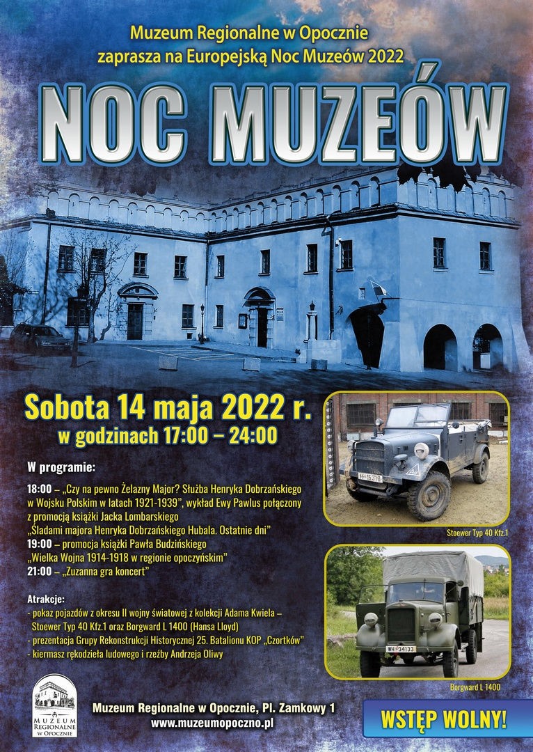 Na gości będą czekały także ciekawe atrakcje w postaci pokazu pojazdów wojskowych z okresu II wojny światowej, pochodzących z kolekcji Adama Kwiela (Stoewer Typ 40 Kfz.1 oraz Borgward L 1400 Hansa Lloyd) oraz prezentacja Grupy Rekonstrukcji Historycznej 25. Batalionu KOP „Czortków”. Dla miłośników folkloru Muzeum przygotowało natomiast kiermasz rękodzieła ludowego i rzeźby znanego opoczyńskiego artysty Andrzeja Oliwy.