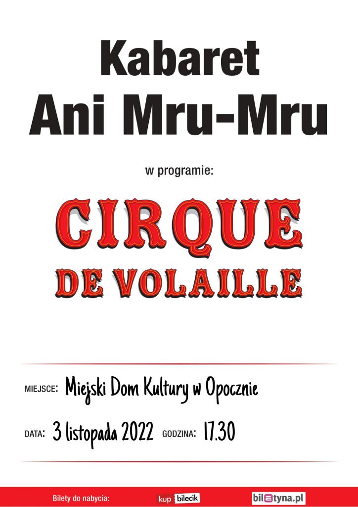 Przed nami najnowsza, premierowa odsłona zatytułowana „Cirque de volaille”, podczas której opoczyńska publiczność będzie małą okazję zobaczyć nowe oblicze kabaretu i nieznane jeszcze skecze, nieemitowane dotąd w telewizji. Bilety w cenie 80 zł do dostępne są już w KASIE MDK, na www.biletyna.pl i www.kupbilecik.pl.