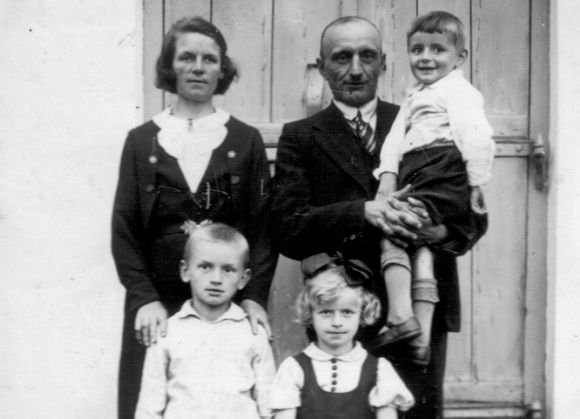 Rodzina Bachorzów ze Słupi koło Jarocina podczas wysiedlenia w Białaczowie, rodzice Helena i Stanisław z dziećmi: Stefanią, Henrykiem i Janem.
