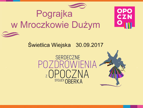 Gmina Opoczno oraz Koło Gospodyń Wiejskich z Mroczkowa Dużego zapraszają w sobotę, 30 września do świetlicy wiejskiej w Mroczkowie Dużym na pograjkę.