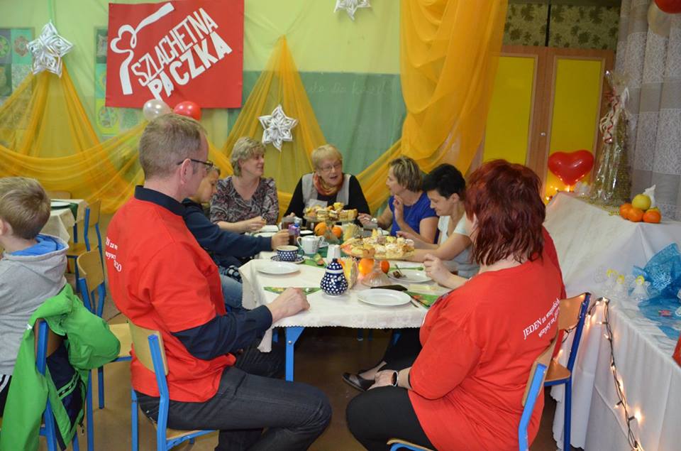 Przez całą sobotę i niedzielę w Magazynie Paczki , znajdującym się dzięki uprzejmości Pani Dyrektor Małgorzaty Kozłowskiej w Zespole Szkół Samorządowych Nr 1, panował ogromny ruch. Dwudziestu wolontariuszy Szlachetnej Paczki wraz z kilkudziesięcioosobową grupą młodzieży witało podjeżdżających z paczkami Darczyńców i przenosiło pięknie opakowane kartony z do Magazynu. Następnie Darczyńcy byli podejmowani w świątecznie przystrojonej świetlicy, gdzie przy dźwiękach kolęd mogli poczęstować się pysznymi ciastami i podzielić wrażeniami z przygotowywania Paczki.