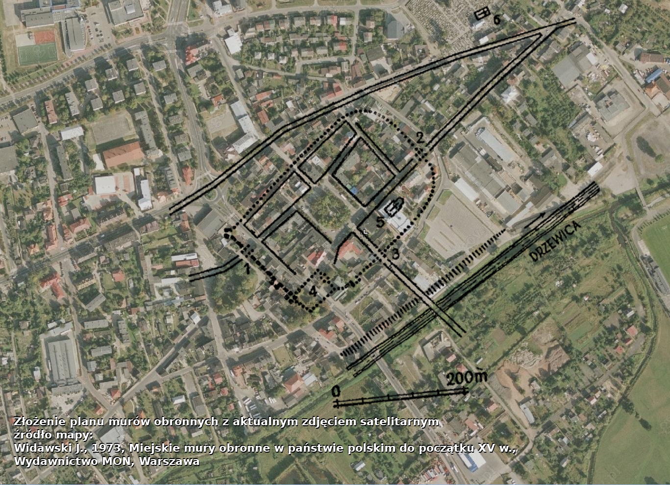 Pamiętając o podnoszeniu się poziomu miasta, należy założyć, że fragmenty murów zachowały się do dzisiaj w piwnicach m.in. przy ul. Kołomurnej, ul. Kazimierza Wielkiego (w części od ul. J. Sobieskiego, oraz przysypanych piwnicach na skwerze). Na podstawie fragmentu planu miasta z 1820 roku z zaznaczonym przebiegiem zachodniej części murów, możemy również wskazać przypuszczalne miejsca istnienia wież. Jedna z nich istniała na placu pomiędzy "SDH", a "MAR-WIT" (w którego fundamentach znajdują się najprawdopodobniej resztki murów). Kolejna w miejscu parceli przy pl. Strażackim 8, a następna relatywnie niedaleko od poprzedniej, na przeciwko posesji przy ul. Kazimierza Wielkiego 4 (być może w miejscu dzisiejszej jezdni lub już na terenie skweru).