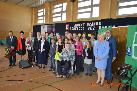 Społeczność „Dwójki” oraz zaproszeni goście zebrali się na placu szkolnym, obok nowo powstałego szybu windowego, gdzie p. dyr. Edyta Czarnecka przywitała gości oraz przedstawiła historię szkoły w działaniach na rzecz uczniów niepełnosprawnych. Następnie miał miejsce oddanie do użytku infrastruktury dla osób niepełnosprawnych w szkole. Symbolicznego przecięcia wstęgi dokonali: wicemarszałek Sejmu Elżbieta Radziszewska, posłowie Robert Telus i Artur Ostrowski, wicewojewoda łódzki Jarosław Klimas, przewodniczący Sejmiku województwa łódzkiego Marek Mazur, wicekurator Oświaty w Łodzi Konrad Czyżyński, starosta opoczyński Józef Róg, wiceburmistrz Opoczna Anna Zięba, dyrektor szkoły Edyta Czarnecka. Uroczystego poświęcenia windy dokonał ks. dziekan Jan Serszyński.