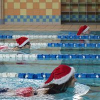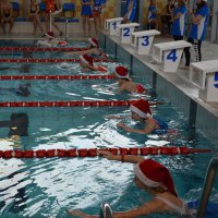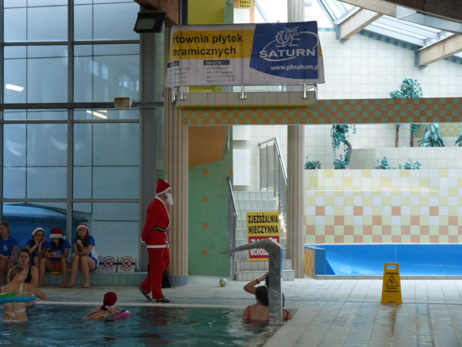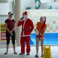 W tym roku oczywiście nie zabrakło również Św. Mikołaja, który przybył z pełnym plecakiem słodkości dla naszych zawodników. Rozgrzewkę poprowadziła na małym basenie pani Kasia.