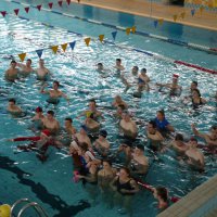 Na wesoło odbył się „bieg z jajem” w parach (chłopak i dziewczyna). Panie leżały na materacu-panowie transportowali dziewczyny na drugą stronę basenu na czas.