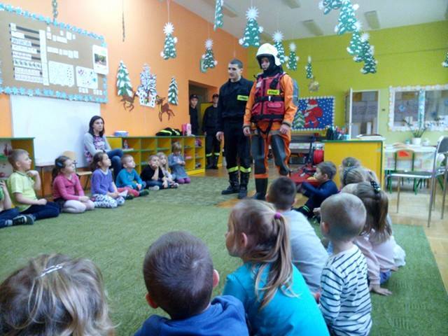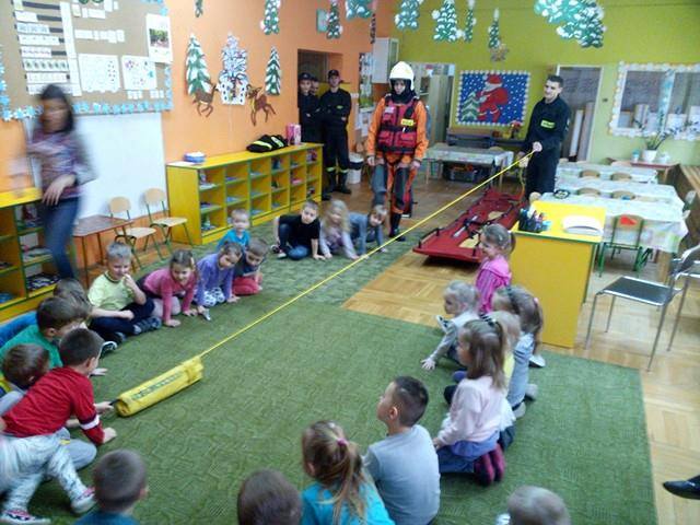 Podczas tego spotkania strażacy przybliżyli obecnym podstawowe zasady bezpieczeństwa przy zamarzniętych zbiornikach wodnych oraz co robić, gdy zauważymy, że pod kimś załamał się lód. Dzieci z bliska miały możliwość podziwiać wyposażenie, jakim dysponują podczas swojej ciężkiej i odpowiedzialnej pracy strażacy. Przedszkolaki wykazały ogromne zainteresowanie spotkaniem, podczas którego nabyły cenną wiedzę.