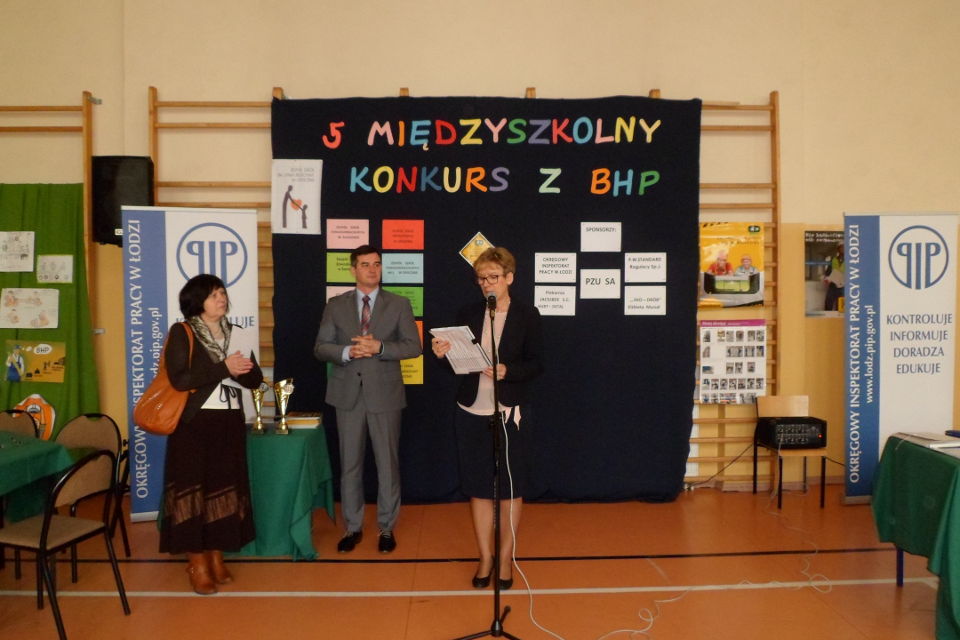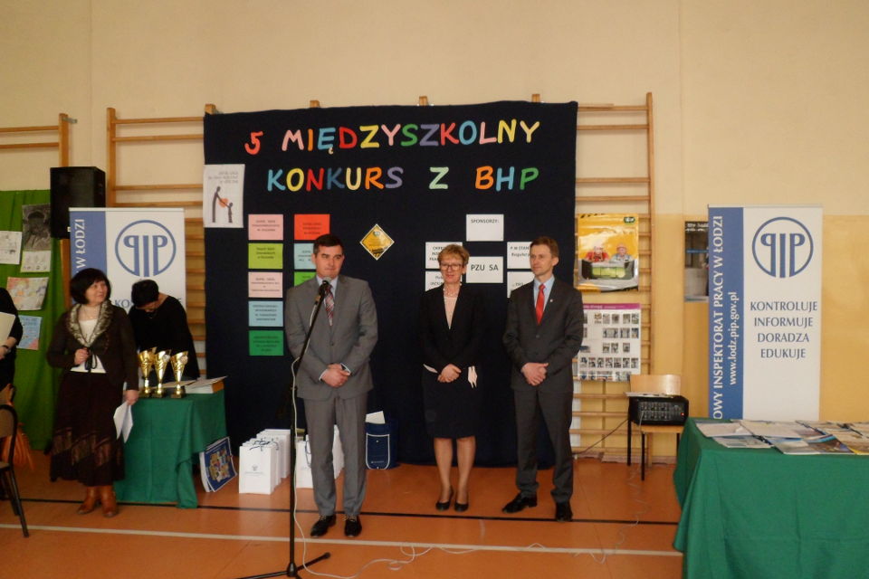 W przeprowadzeniu konkursu czuwali zaproszeni przedstawiciele z Okręgowego Inspektoratu Pracy w Łodzi: pan Marek Kostrzewski i pan Krzysztof Barański. W części oficjalnej uczestniczył : Zastępca Starosty pan Marcin Baranowski. Konkurs przyczynił się do propagowania, poznawania i stosowania zasad BHP wśród uczniów zgodnie z programem "Kultury bezpieczeństwa".