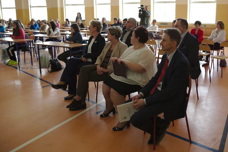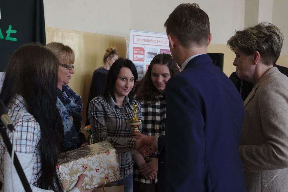 Nagrody wręczali – wicestarosta Powiatu Opoczyńskiego Marcin Baranowski, Naczelnik Wydziału Oświaty Marek Ziębicki, zastępca Dyrektora Departamentu Kultury i Edukacji Urzędu Marszałkowskiego Województwa Łódzkiego Mariola Mirecka, pan Artur Rudzki.