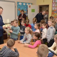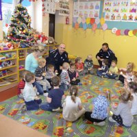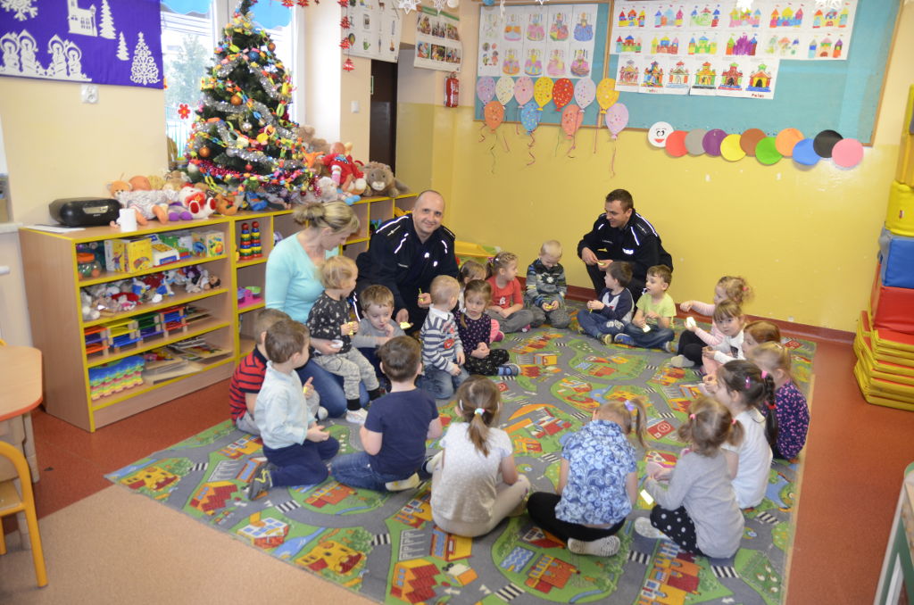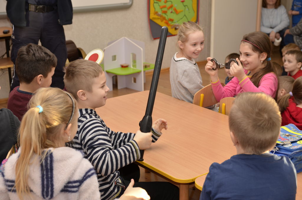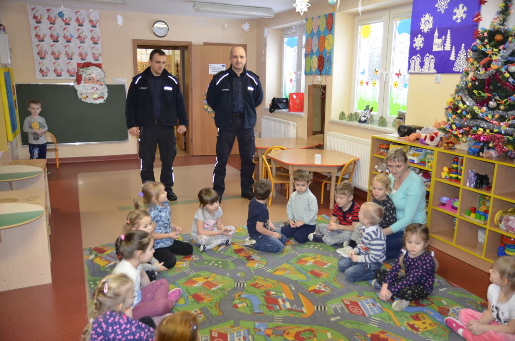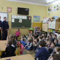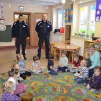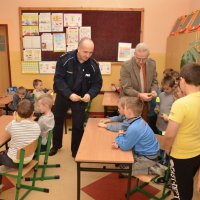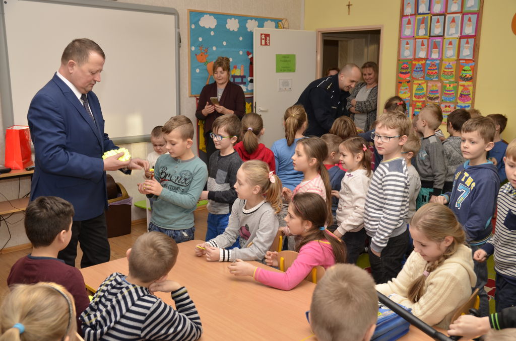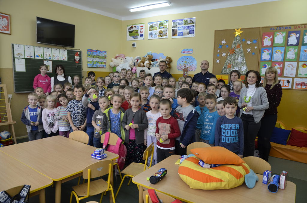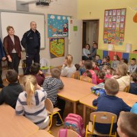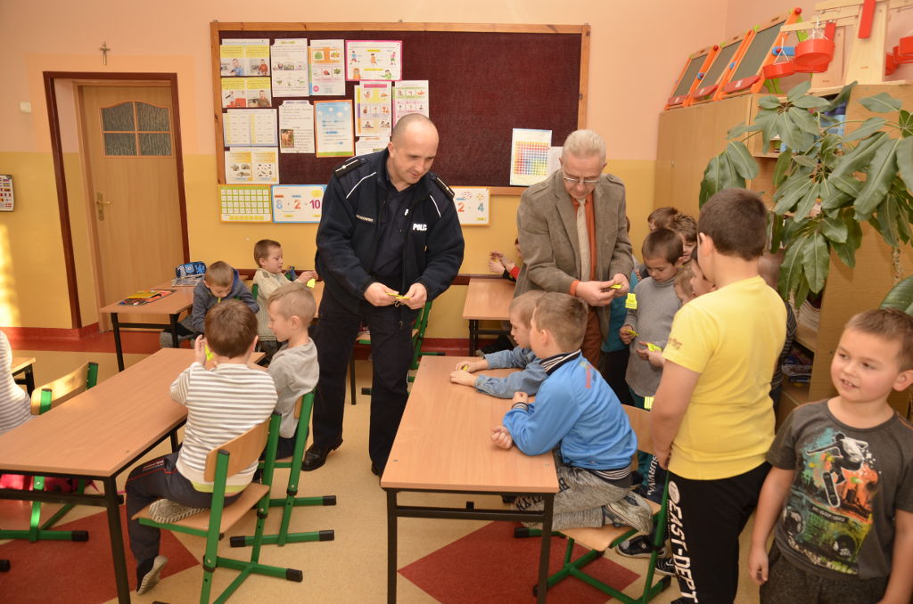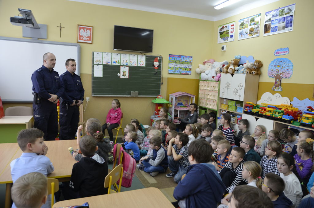 Policjanci przybliżyli uczniom najważniejsze reguły, jakimi powinni kierować się podczas wypoczynku, zarówno w kontaktach z osobami obcymi, jak również podczas zimowych zabaw. Szczególną uwagę zwrócili na ogromne niebezpieczeństwo jakie niesie za sobą zabawa w pobliżu zbiorników wodnych. Przypomnieli jak groźne dla życia jest wchodzenie na dzikie lodowiska.Oczywiście podczas rozmów z dziećmi przypomnieli najmłodszym jak należy zachować się w sytuacji niebezpiecznej, jak wezwać pomoc . Mundurowi opowiedzieli także najmłodszym jak ważne jest noszenie elementów odblaskowych.