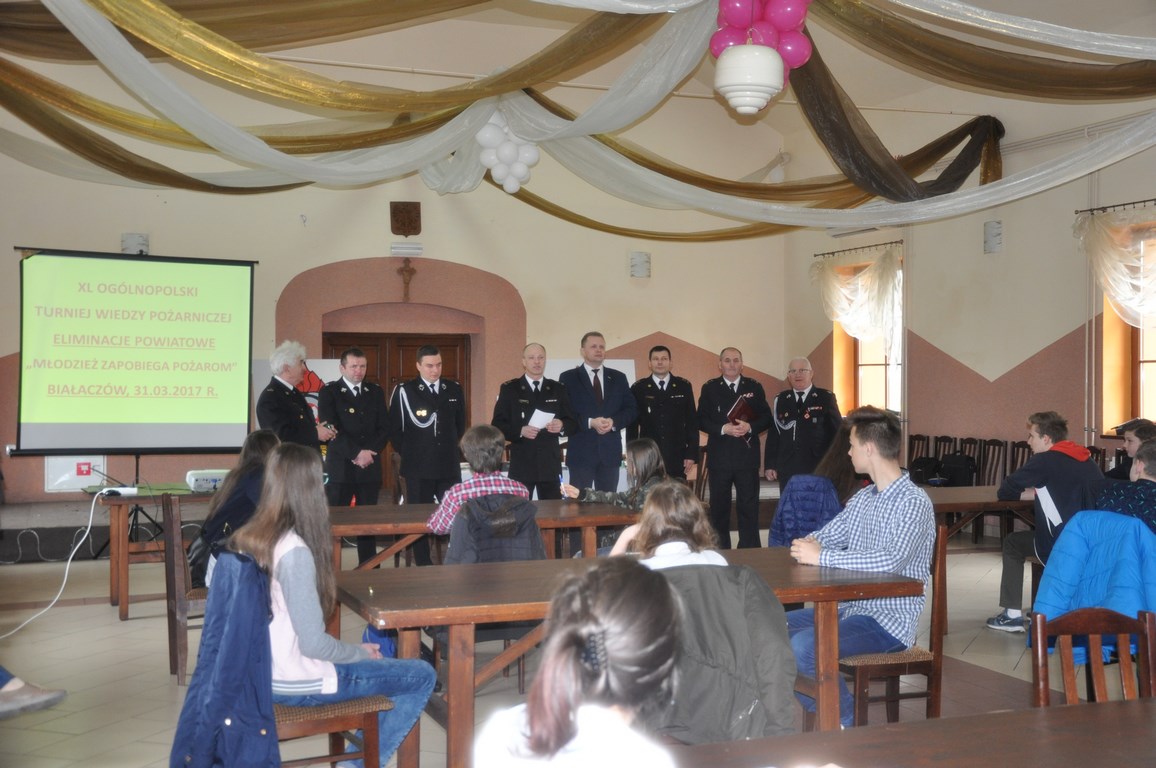 W dniu 31 marca br. w siedzibie Ochotniczej Straży Pożarnej w Białaczowie odbyły się XL eliminacje powiatowe Ogólnopolskiego Turnieju Wiedzy Pożarniczej pt. „Młodzież zapobiega pożarom”. Celem turnieju była m.in. popularyzacja wśród dzieci i młodzieży szkolnej znajomości przepisów z zakresu ochrony przeciwpożarowej.