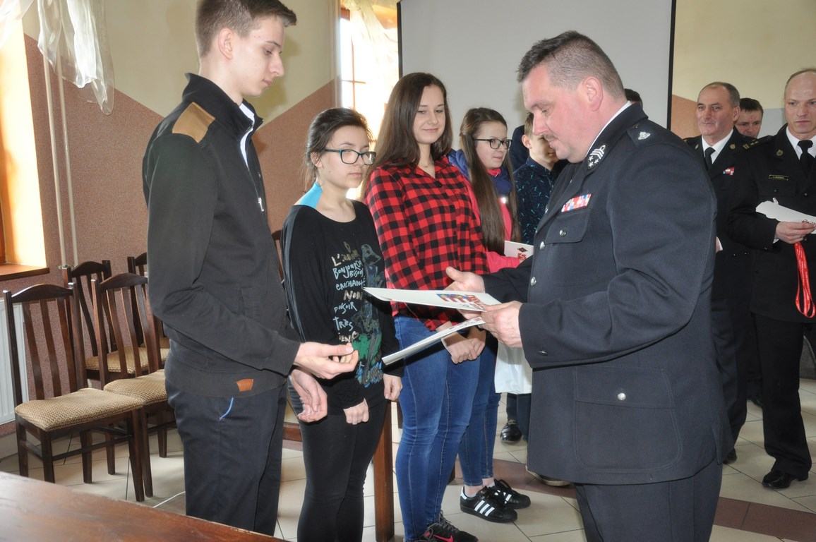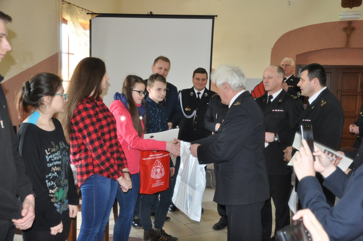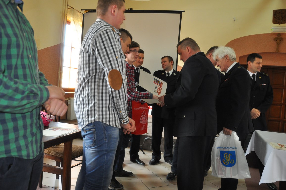 Nagrody rzeczowe (sprzęt audio ufundowany przez Zarząd Oddziału powiatowego ZOSP RP w Opocznie, czujki dymu i czadu ufundowane przez KP PSP w Opocznie) i pamiątkowe dyplomy wręczali wójt Gminy Białaczów Jacek Reszelewski, Zastępca Komendanta Powiatowego PSP bryg. Józef Pacan oraz członkowie Zarządu Powiatowego ZOSP RP w Opocznie, m.in. bryg. Marian Kłobucki, mł. bryg. Andrzej Urbańczyk i dh Jarosław Jurowski.