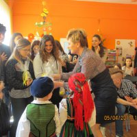 Na koniec spotkania Pani Dyrektor Małgorzata Buczyńska kultywując tradycję Baby Wielkanocnej wręczyła gościom upominki związane ze zbliżającymi się świętami.