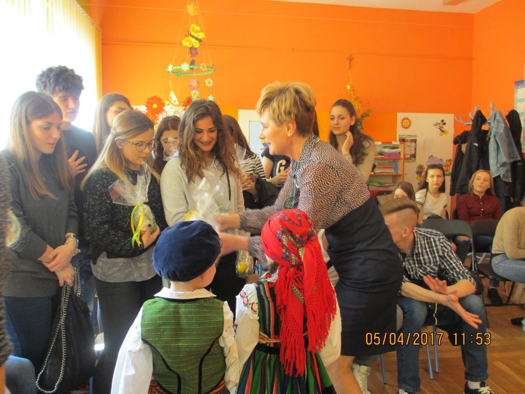 Dzieci, które w pierwszym momencie czuły się onieśmielone barierą językową, szybko znalazły dobry kontakt z gośćmi poprzez wspólną zabawę. Była to okazja do pokazania się na opoczyńską nutę.