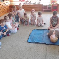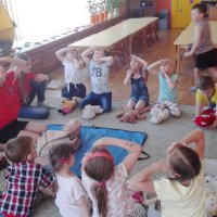 Na duże brawa zasługują dzieci z grupy integracyjnej, które z dużym zainteresowaniem obserwowały prowadzących warsztaty ratowników i ćwiczyły pierwszą pomoc razem ze swoimi zdrowymi kolegami.