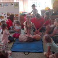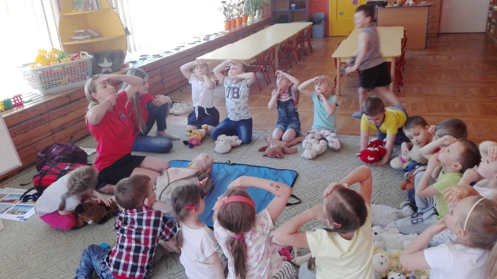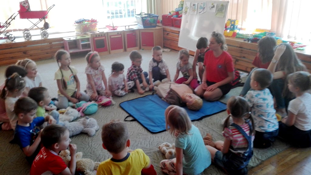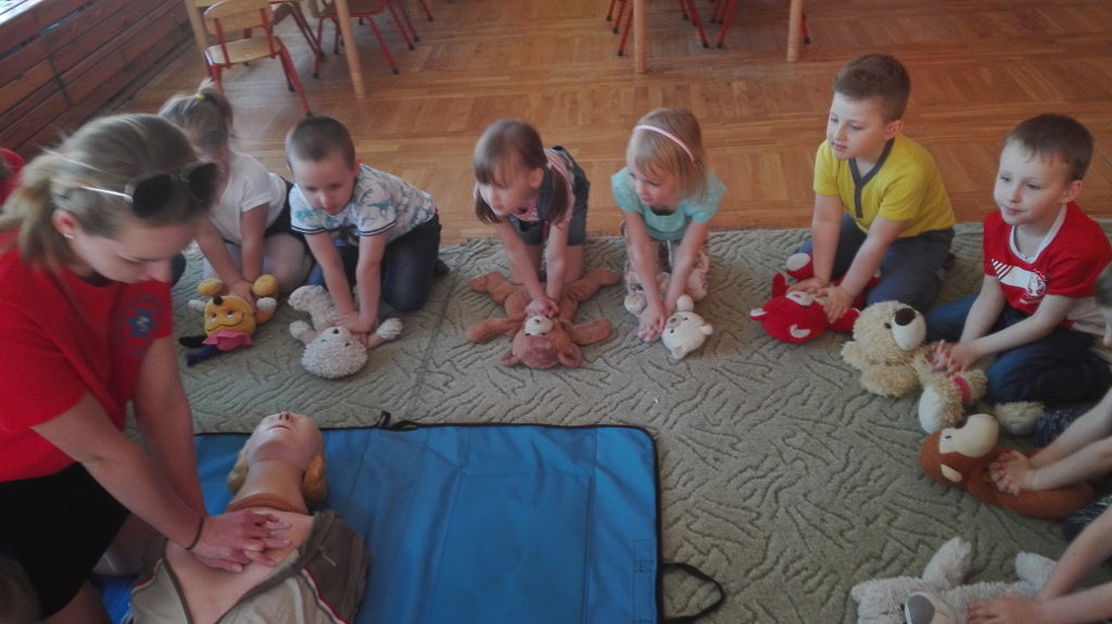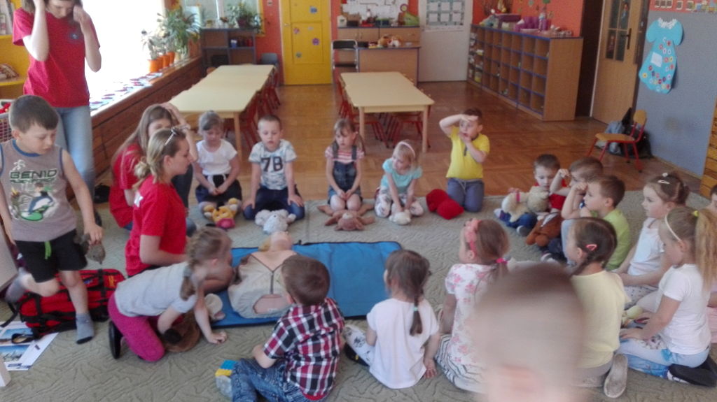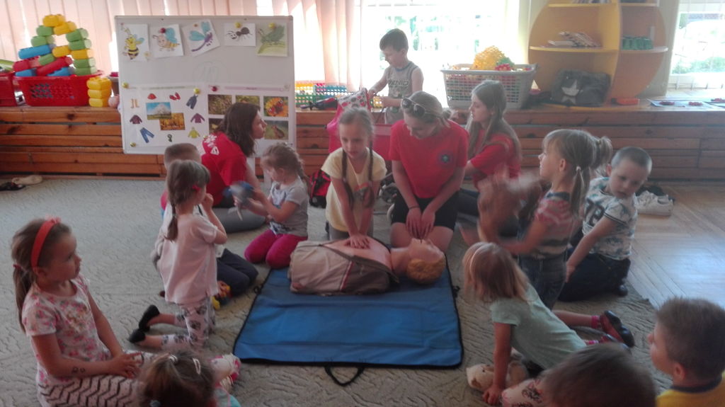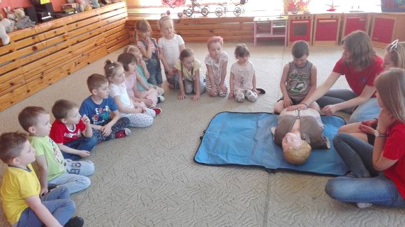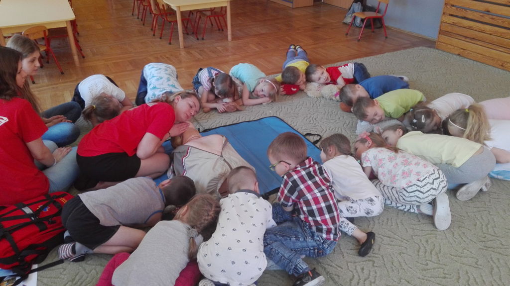 Dzieci podczas zajęć w grupach, mogły poczuć się jak mali ratownicy. Młodzież należąca do wspomnianego klubu zapoznawała przedszkolaki z procedurą zachowania w sytuacjach zagrożenia życia, zranień, złamań. Największe emocje wzbudzał oczywiście pokaz resuscytacji wykonywany na fantomie.