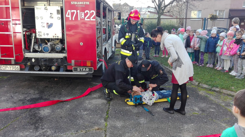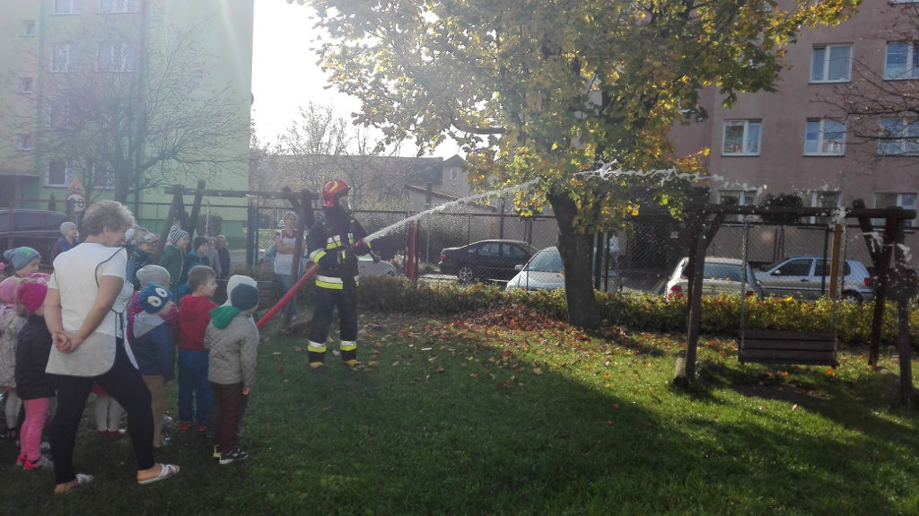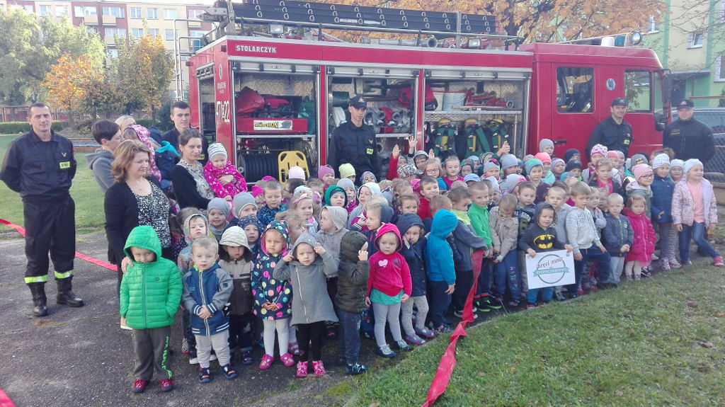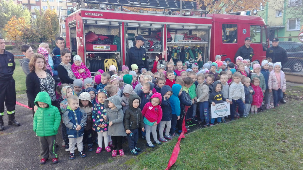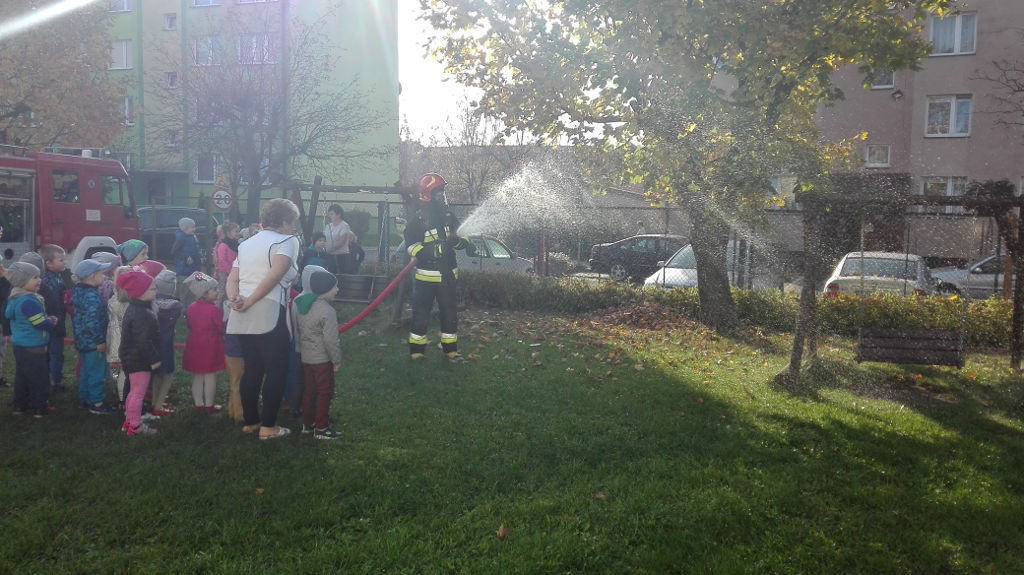 W ostatnim czasie odbyły się zaś manewry przeciwpożarowe. Dzieci spisały się wspaniale, spokojnie ewakuując się wraz ze swoimi nauczycielkami. Mimo, iż najmłodsi mają 2,5 roku byli równie dzielni jak 6 latki. Nie przestraszył ich ani sygnał syreny ani sami strażacy. Po udanej ewakuacji strażacy uczyli dzieci jak należy zachować się w razie niebezpieczeństwa jakim może być m.in. ogień. Dodatkowo przećwiczona została sytuacja, gdy w budynku zostaje nauczycielka z podopiecznym i należy szybko ją odnaleźć oraz jak niesie się poszkodowanego.