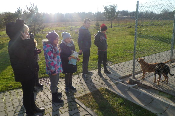 Uczniowie w dniu 14 grudnia odwiedzili z opiekunami (p. Małgorzatą Adamczyk, Aleksandrą Dziubałtowska i Anną Podlewską) schronisko, spotkali się bezpośrednio z przebywającymi w nim pensjonariuszami i przekazali ich opiekunom paczki ze smakołykami – pamiętając o nich w tym świątecznym czasie. Mogli zobaczyć w jakich warunkach mieszkają psy, co jedzą, jak spędzają czas w swoim nowym domu. Wiele ciekawych informacji usłyszeli od pracownika- opiekuna schroniska, który potrafił zainteresować uczniów swoim opowiadaniem o rasach, zachowaniach psów, adopcji, współpracy ze stowarzyszeniami i fundacjami działającymi na rzecz zwierząt.