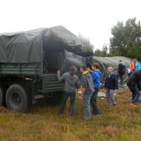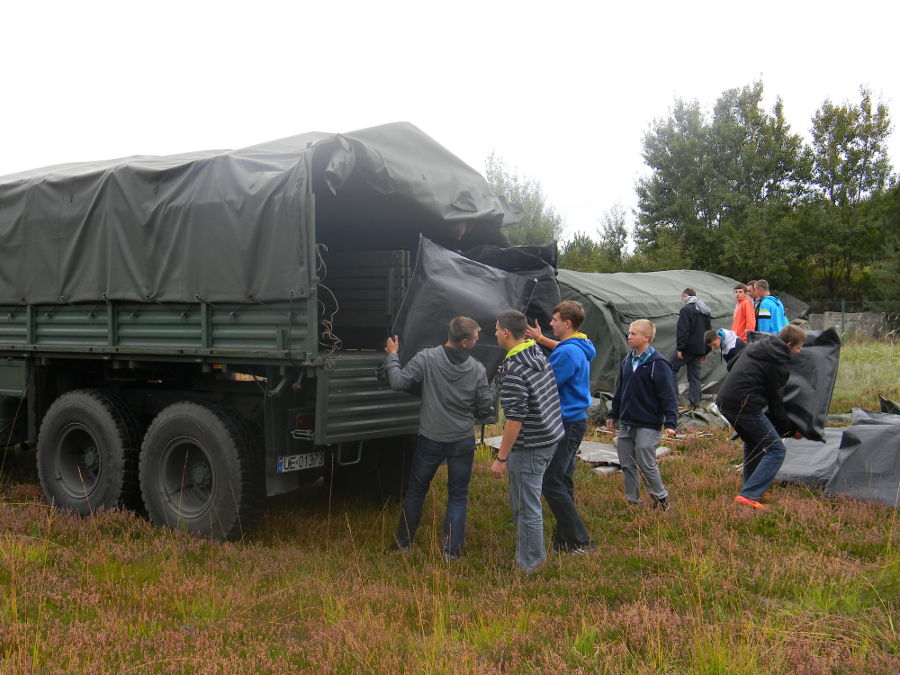 Po obiedzie na stołówce żołnierskiej przyszła kolej na budowę obozowiska. Dość surowe warunki pogodowe sprawiły, iż w rekordowym tempie stanęły 4 namioty wojskowe wzbudzając lekkie niedowierzanie żołnierzy.