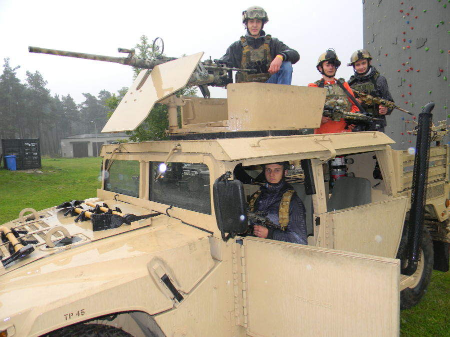 Kolacja także zorganizowana była w konwencji polowej - ognisko z kiełbaskami. Krótki odpoczynek i przygotowania do nocnych manewrów. Trudne warunki pogodowe (cały dzień padał deszcz) zmusił organizatorów szkolenia do małej modyfikacji planu. Zamiast patrolu pieszego w terenie lesistym żołnierze zorganizowali patrol nocny na pojazdach z wykorzystaniem samochodów osobowo – terenowych typu Honker i HUMVEE.