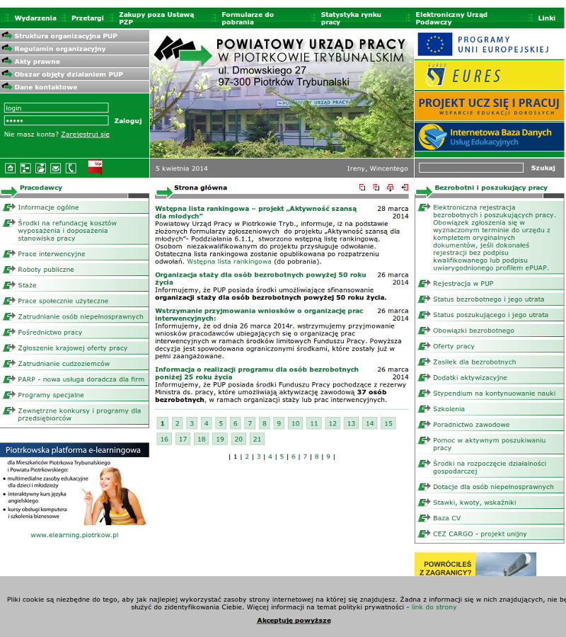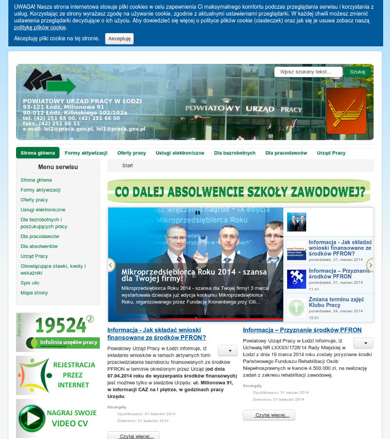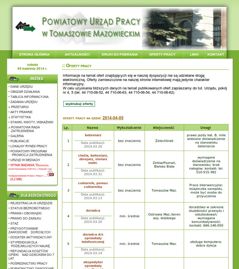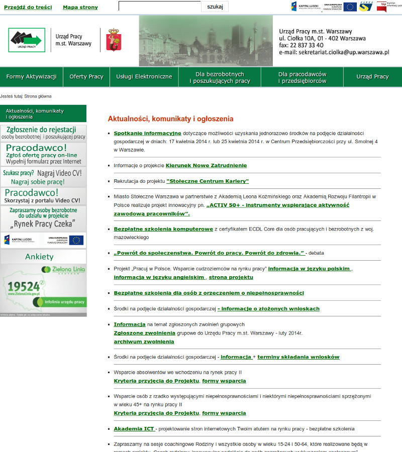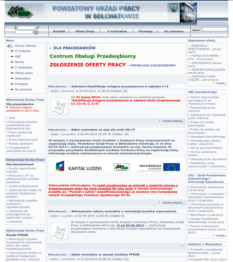 Dla porównania, poniżej przedstawiamy zrzuty stron Urzędów Pracy wykonane w sobotę, 5. kwietnia 2014 roku.