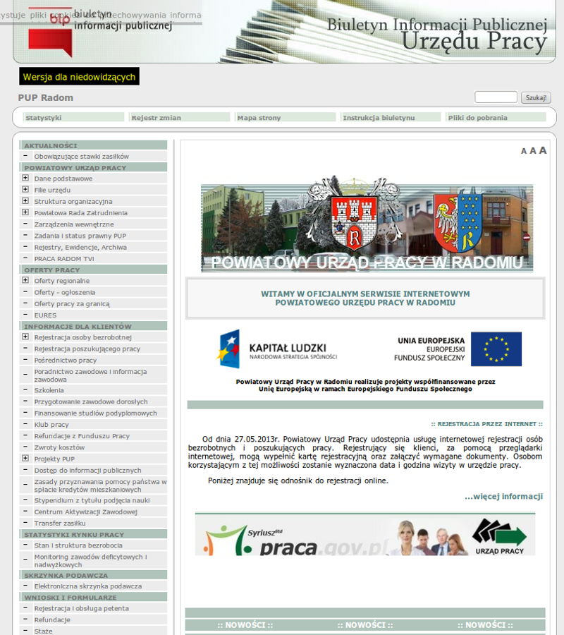 Jak się okazuje, każdy Urząd Pracy ma inną stronę internetową. Jeśli wziąć pod uwagę te najnowsze, ich wygląd zależy wyłącznie od firmy, która ją wykonała. Zauważalny jest brak spójności zarówno w wyglądzie serwisów, jak i samej treści.