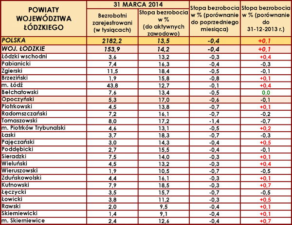Bezrobocie w powiecie opoczyńskim w kwietniu 2014 roku