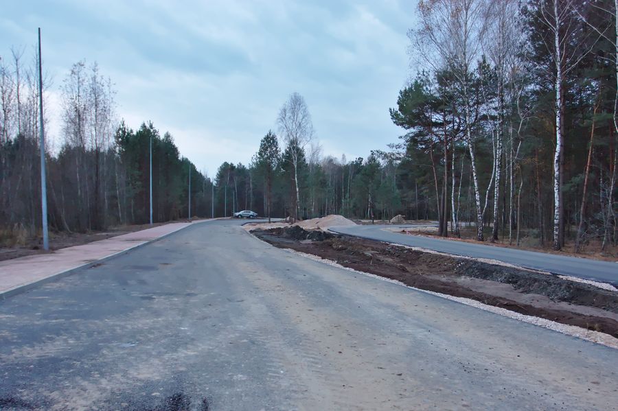 Od strony wschodniej dojazd będzie możliwy drogami gminnymi, a na końcowym odcinku, drogą równoległą do linii kolejowej. We wrześniu zakończono tam wycinkę drzew, udrożniono rowy przydrożne. Poszerzony został również pas drogowy. W związku z wykonaniem przejścia podziemnego pogłębiono i udrożniono ok. 1 km rowów melioracyjnych. W sierpniu rozebrano trzy budynki należące do PKP , które kolidowały z budowanym parkingiem. Parking ten jest już na ukończeniu. Wykonawcy pozostało położenie nawierzchni asfaltowej, wykonanie oznakowania pionowego i poziomego oraz oświetlenia i monitoringu. Zakończenie prac ma nastąpić 14. listopada.