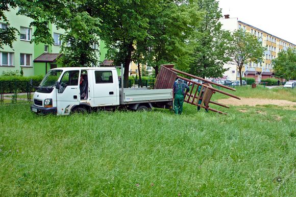 Wczoraj mieszkańcy protestowali przeciwko usunięciu wyposażenia, w którego zakupie partycypowali przez lata, wpłacając pieniądze na fundusz remontowy. Jak zapewniał Zastępca Prezesa d/s Technicznych Jan Mędoń, zabawki mają zostać wyremontowane i zamontowane na innych placach zabaw. Niestety, ale obserwując sposób ich demontażu, a właściwie dewastacji (wycinanie piłą spalinową i wyłamywanie), odniosłem wrażenie, że czeka je całkiem inna przyszłość.