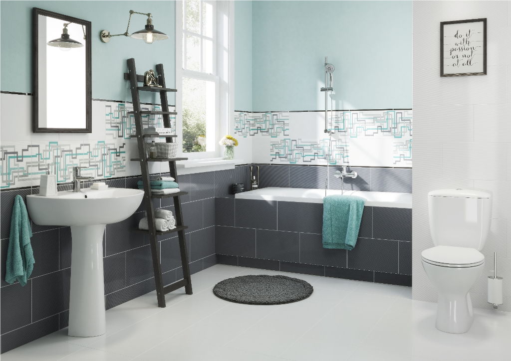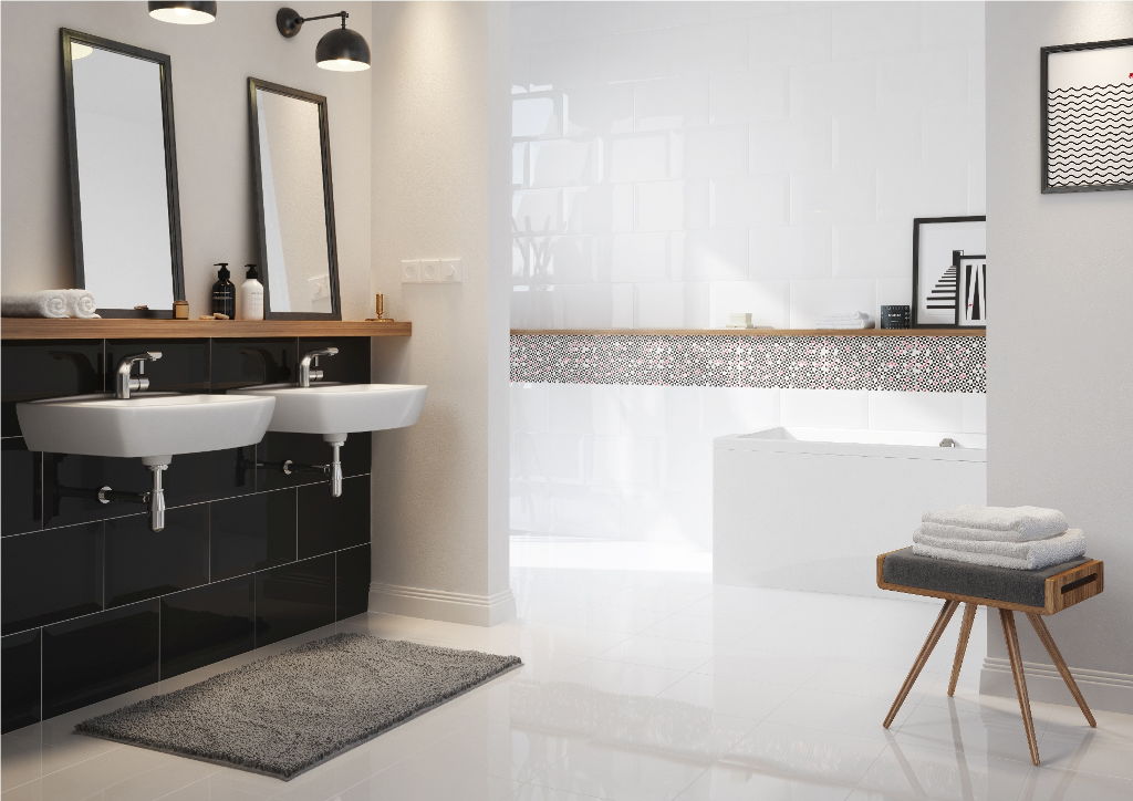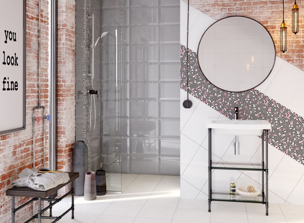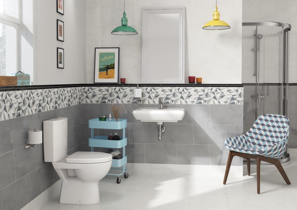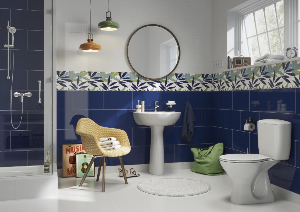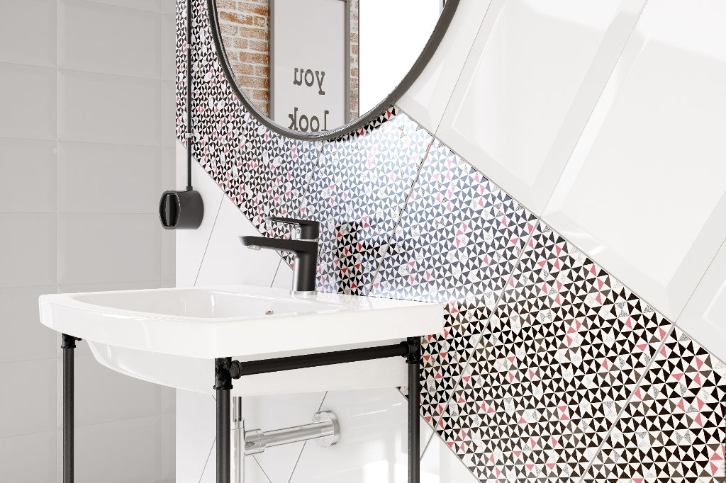 Wyraziste wzory płytek ceramicznych oraz małe formaty to gorący trend we wzornictwie i prosty sposób na oryginalny wystrój łazienki. Ciekawe, geometryczne dekory kolekcji Ponti, Adelle, Lunia czy Tunia Cersanit, wyróżniające się na tle stonowanej kolorystyki gładkich kafli, dobrze sprawdzają się na fragmentach ścian. Można nimi zaakcentować wybraną strefę łazienkową lub wprowadzić jako motyw przewodni wystroju całego wnętrza. Wzorzyste płytki pojawiają się na ścianach wokół wanny, mogą też zdobić w ciekawy sposób przestrzeń z lustrem nad umywalką. Modne są wzory tworzące złudzenia optyczne, np. figury geometryczne (stożki, trójkąty, sześciany) w odcieniach szarości wywołują wrażenie trójwymiarowości. Kropki na płytkach zawsze dodają lekkości i wprowadzają do wystroju łazienki element kobiecy. Geometryczny rysunek nieregularnych linii w pastelowych odcieniach sprawi, że powierzchnia ścian nabierze głębi. Natomiast wyrazisty motyw roślinny, w połączeniu z ciekawym kolorem płytek, to świetny sposób na stworzenie klimatu vintage we współczesnej łazience.