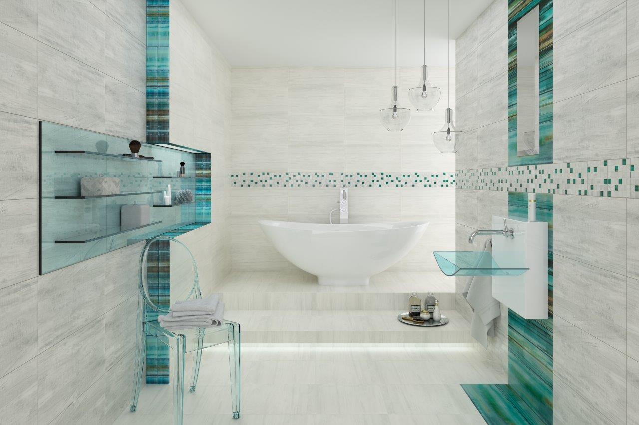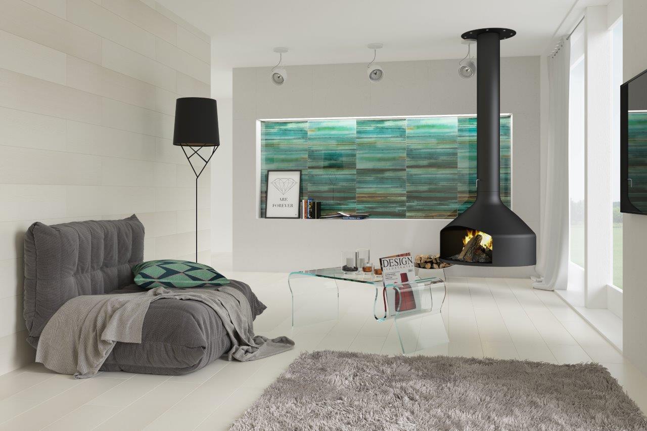 Modernistyczna kolekcja płytek ściennych Laterizio to propozycja do wnętrz urządzonych w stylu nowoczesnym. Fascynujące oceaniczno-miętowo-błękitne dekory, dzięki swej wyrazistości, sprawdzą się w prostych minimalistycznych aranżacjach. Cyfrowe grafiki szklanych insert dają atrakcyjny wizualny efekt 3D. Jednocześnie podkreślają przestrzeń, dzięki temu zasługują przede wszystkim na miejsce w przestronnych pomieszczeniach, zwłaszcza w kuchni, salonie i łazience.