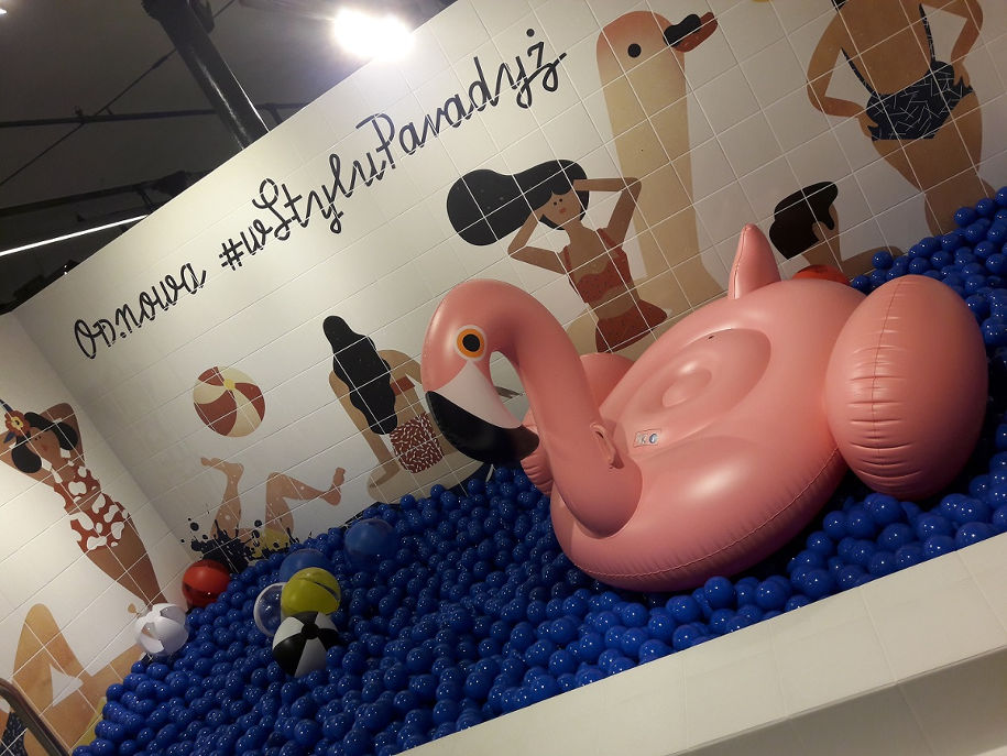 Podczas tegorocznej edycji Łódź Design Festival, Ceramika Paradyż zaprezentowała bardzo odważną wystawę, którą przygotowała wspólnie z łódzką pracownią projektową Oshi. Była to instalacja przypominająca basen wypełniony niebieskimi kulkami. Grafikę do tego projektu wydrukowaną na płytkach ceramicznych, wykonała jedna z najzdolniejszych polskich ilustratorek Aleksandra Niepsuj. Wielką atrakcją był także różowy flaming, z którym chętnie robiono zdjęcia. Zewnętrzna część ściany pokryła się napisami i pozdrowieniami w różnych językach. Przewrotna, zarażająca dobrą energią wystawa Mecenasa, cieszyła się ogromnym zainteresowaniem wśród zwiedzających, zachęcając wszystkich do nieskrępowanej zabawy. A wszystko to w surrealistycznym wydaniu, idealnie wpisującym się w obchody stulecia awangardy polskiej. – Pochodzące z łaciny słowo festiwal oznacza coś wesołego, radosnego. Właśnie w taki sposób podeszliśmy do tego wydarzenia w tym roku. Nie chcieliśmy komunikować się z uczestnikami poprzez pokazanie stricte naszego produktu, ale pokazać na nowo zupełnie odmienny sposób myślenia o marce. Ceramika Paradyż w marcu 2016 roku, kiedy to nastąpiła zmiana struktury właścicielskiej narodziła się także OD.NOWA. Ten proces trwa nadal. Dotychczas udało się wprowadzić nowe technologie i produkty, zupełnie zmienić podejście do marketingu, ale także wprowadzić w firmie nową misję, wizję i wartości takie jak otwartość, szacunek i odwaga. Właśnie taka była nie tylko wystawa, ale także każdy aspekt naszej obecności na festiwalu – dodaje Tomasz Popielawski.