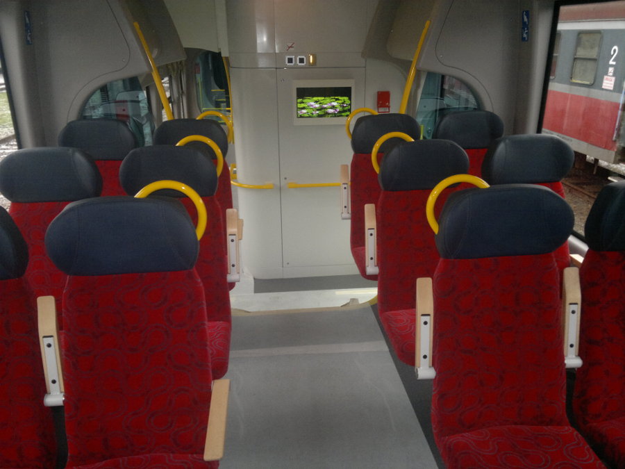 - Przedział WC – dostosowany do korzystania przez osoby niepełnosprawne na wózku inwalidzkim, wyposażony w toaletę w systemie zamkniętym.