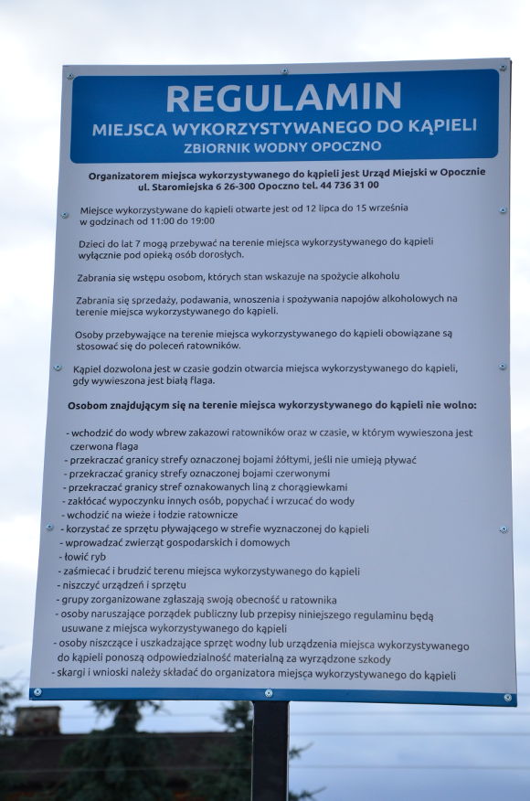 Nad opoczyńskim zalewem wyznaczono miejsce wykorzystywane do kąpieli. W związku z tym, już od 12. lipca 2015 roku w godzinach od 11:00 do 19:00 będzie można się legalnie kąpać pod okiem ratownika.