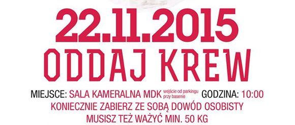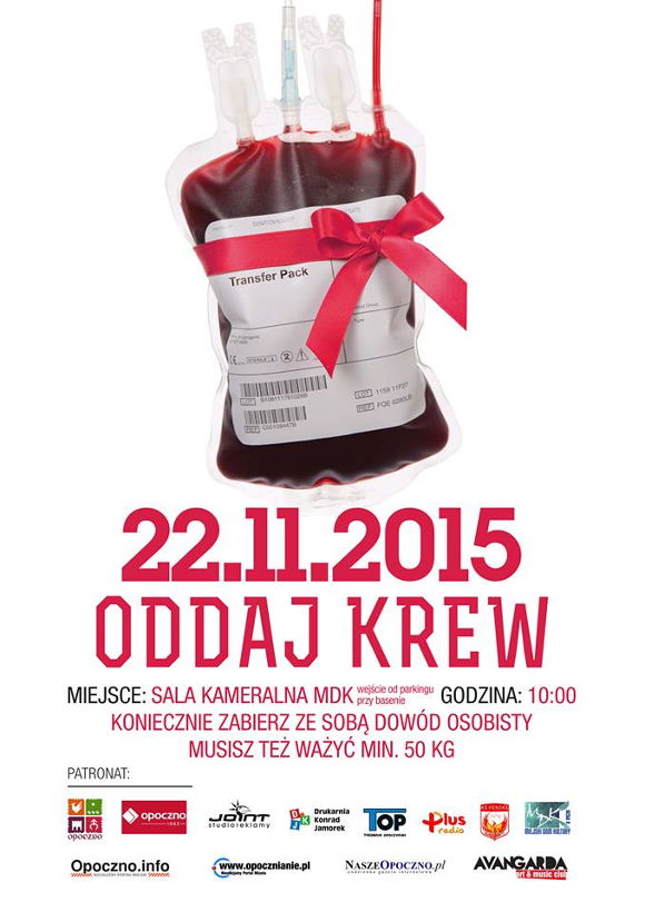 22 listopada w Sali kameralnej MDK rusza II edycja „Opoczno oddaje krew”, organizowane przez Klub Honorowych Dawców Krwi przy Opoczno I Sp. z. o. o. oraz Ludowy Klub Sportowy Feniks.