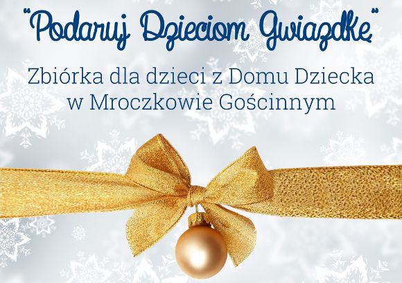 Akcja Podaruj Dzieciom Gwiazdkę to zbiórka produktów długoterminowych (kasza, cukier, mąka, makaron, ryż itp.) przeznaczonych dla Domu dziecka w Mroczkowie Gościnnym.