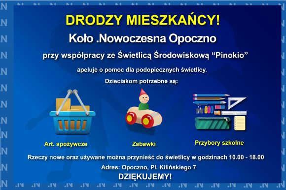 Koło .Nowoczesna Opoczno wraz ze Świetlicą Środowiskową "Pinokio" w Opocznie apelują o pomoc dla podopiecznych świetlicy.