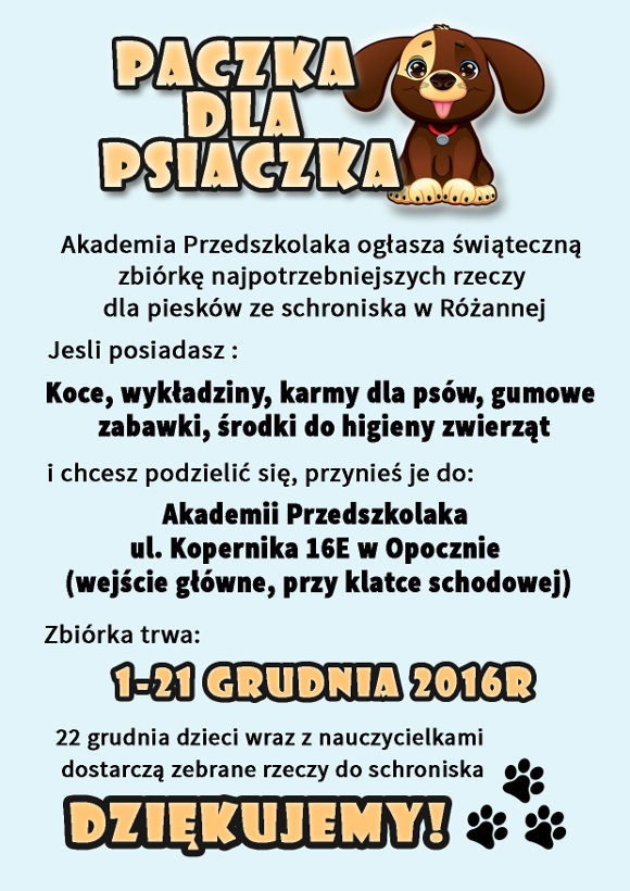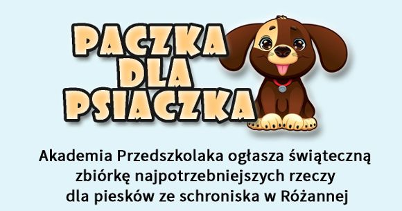 Akademia Przedszkolaka zachęca do udziału w świątecznej zbiórce najpotrzebniejszych rzeczy dla psiaków ze schroniska w Różannej.