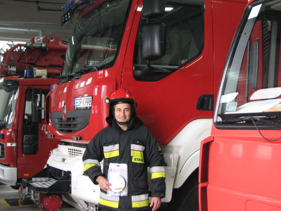 Czujka tlenku węgla i dymu, którą prezentuje na zdjęciu strażak tut. Komendy, już nie jednej osobie czy rodzinie uratowała życie. Taka czujka bardzo głośnym sygnałem akustycznym odpowiednio wcześniej nas zaalarmuje w przypadku wykrycia niewielkich ilości dymu czy ulatniającego się czadu w mieszkaniu, co zwłaszcza w godzinach nocnych gdy śpimy, może nam uratować życie.