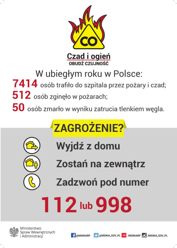 W związku z powyższym apelujemy do mieszkańców powiatu opoczyńskiego o dokładne sprawdzenie stanu technicznego urządzeń grzewczych oraz przewodów dymowych, spalinowych i wentylacyjnych w swoich domach.