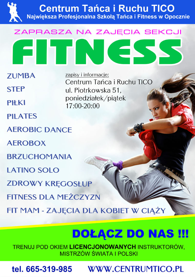 Oprócz zajęć typowo tanecznych Centrum Tańca i Ruchu TICO oferuje zainteresowanym szereg zajęć, wpływających na ogólną kondycję fizyczną człowieka, wśród których są mi.in.: zumba, step, aerobic dance, aerobox, tbc/fat burning, brzuchomania, pilates, fit ball, zdrowy kręgosłup, fit mama, latino solo, fitness dla mężczyzn.