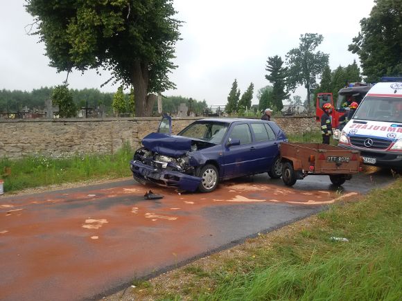 W tym zdarzeniu na szczęście nikomu nic się nie stało, poza stratami w budynku i pojazdach, ale apelujemy, aby pojazdy zasilane instalacją gazową lpg nie garażować w garażach podziemnych lub garażach posiadających kanały naprawcze, gdyż gaz lpg jest cięższy od powietrza i osiada w najniższych miejscach budynku, co w przypadku nieszczelności może powodować dodatkowe niebezpieczeństwo dla lokatorów i mieszkańców budynków oraz poddawać takowe instalacje okresowym przeglądom przez wyspecjalizowane firmy. Dodatkowo można też się wyposażyć w czujnik gazu, który odpowiednio wcześniej poinformuje nas głośnym sygnałem akustycznym. Kwestie garażowania pojazdów z instalacją lpg, zwłaszcza w garażach poniżej poziomu terenu regulują przepisy przeciwpożarowe. - W Żarnowie na ul. Górniczej w wyniku niezachowania zasad bezpieczeństwa w ruchu drogowym doszło do wypadku drogowego, tj. zderzenia dwóch samochodów osobowych marki Daewoo Nubira i VW Golf. Na miejsce zdarzenia zadysponowano jeden zastęp PSP i jeden OSP. Działania zastępów straży polegały na zabezpieczeniu miejsca zdarzenia w tym odłączeniu akumulatorów i zakręceniu butli z gazem LPG, udzieleniu pomocy przedmedycznej rannej kobiecie i przekazaniu osób poszkodowanych opiekę służbie medycznej, a następnie przetransportowaniu ich do Szpitala Powiatowego w Końskich oraz neutralizacji substancji ropopochodnych i uprzątnięciu pozostałości po wypadku drogowym. W wyniku zdarzenia zniszczeniu uległy obydwa przody samochodów osobowych. Poniesione straty oszacowano na 7 tys. zł a uratowane mienie 5 tys. zł.