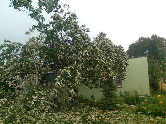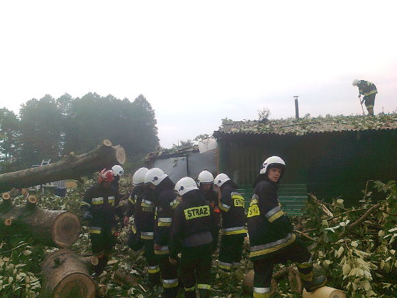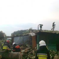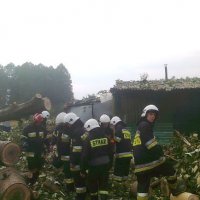 Na zdjęciach akcja usuwania powalonych drzew - 2 topole przewróciły się na budynek mieszkalny w Joaniowie, gm. Paradyż, w którym podczas burzy przebywała rodzina z dwojgiem małych dzieci: