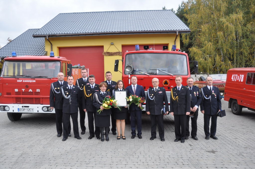 Szczególne podziękowania zostały skierowane do Pani Poseł Krystyny Ozgi członka Zarządu Głównego ZOSP RP w Warszawie, która poświęciła bardzo dużo czasu i serca jednostce OSP Zarzęcin wspierając druhów w ich wcześniejszych działaniach jak również aktywnie angażując się w cały proces związany z włączeniem jednostki do KSRG.