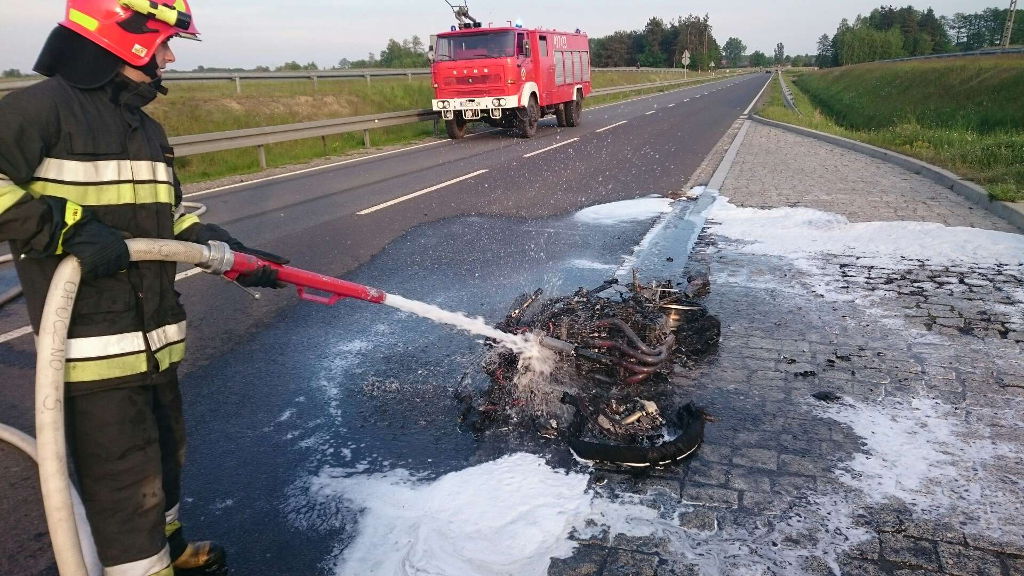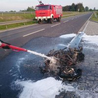 - W Kraśnicy, gm. Opoczno na drodze wojewódzkiej w wyniku niedostosowania prędkości doszło do wypadku drogowego z udziałem motocykla, który uległ zapaleniu. Zadysponowane na miejsce zdarzenia zostały zastępy straży pożarnej 1 OSP i 1 PSP. Działania strażaków polegały na ugaszeniu pożaru motocykla oraz udzieleniu pierwszej pomocy przedmedycznej osobie poszkodowanej, usunięciu substancji ropopochodnych oraz pozostałości po wypadku. Osoba poszkodowana po przebadaniu została przewieziona do szpitala. Całkowitemu zniszczeniu uległ motocykl Kawasaki ZX 10R. Straty wyniosły 20 tys. zł.